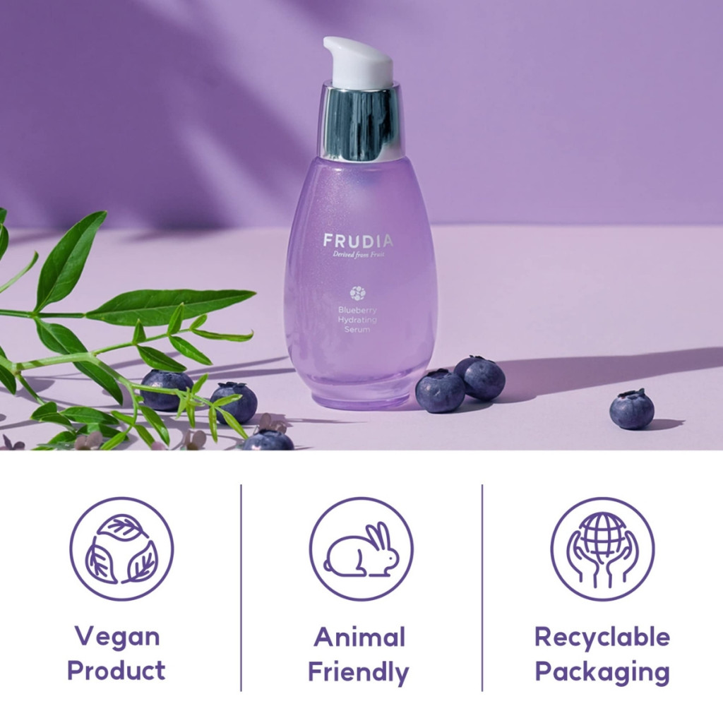 FRUDIA Blueberry Hydrating Serum - Hidratáló arcszérum 50ml – Célzott ápoló, amely segít visszaadni a bőr komfortját és rugalmasságát. Segít fenntartani a hidratáltságot és az egységesebb bőrtónust.