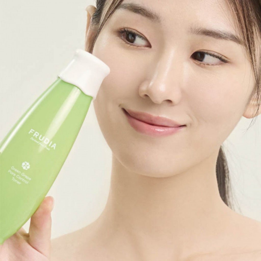 FRUDIA Green Grape Pore Control Toner - Pórusösszehúzó hidratáló tonik 195ml – Selymes textúrájú készítmény a frissebb és ápoltabb megjelenésért. Támogatja a bőr komfortérzetét és védelmét a mindennapok során.