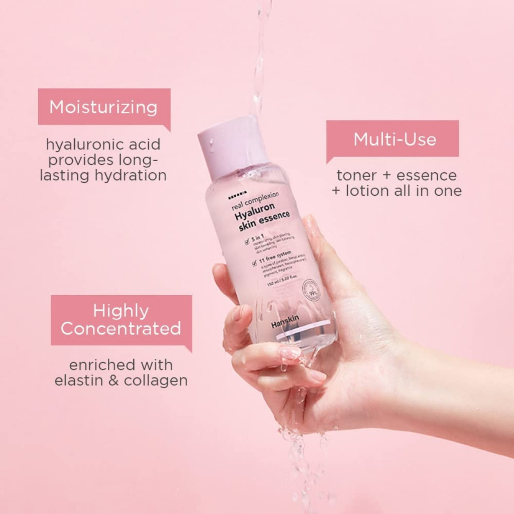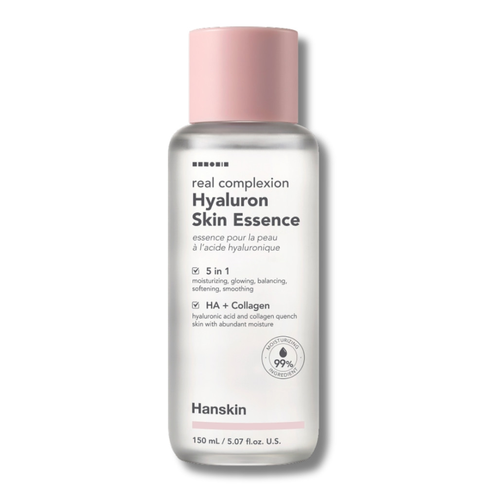 A HANSKIN Real Complexion Hyaluron Skin Essence a koreai bőrápolási rutin egyik kulcslépése. A többféle hialuronsavat tartalmazó formula mélyen hidratálja a bőrt, segít megkötni a nedvességet és támogatja a bőr természetes egyensúlyát. Az esszencia könnyű, gyorsan felszívódó állagú, így nem nehezíti el a bőrt, ugyanakkor láthatóan üdébb, simább bőrképet eredményez. Rendszeres használata javítja a bőr befogadóképességét, így a szérumok és krémek hatékonyabban tudnak működni. Tonizálja, kiegyensúlyozza és kondicionálja minden bőrtípust. p H-érték: 5, 5